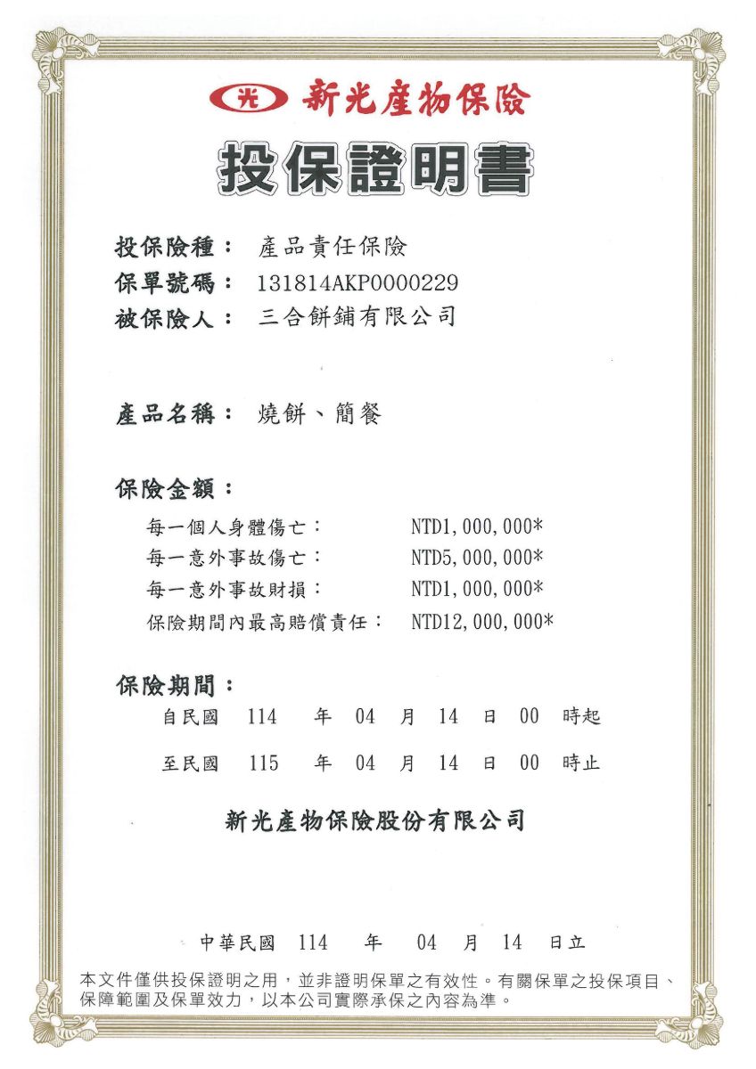 製造廠商:三合餅鋪有限公司
