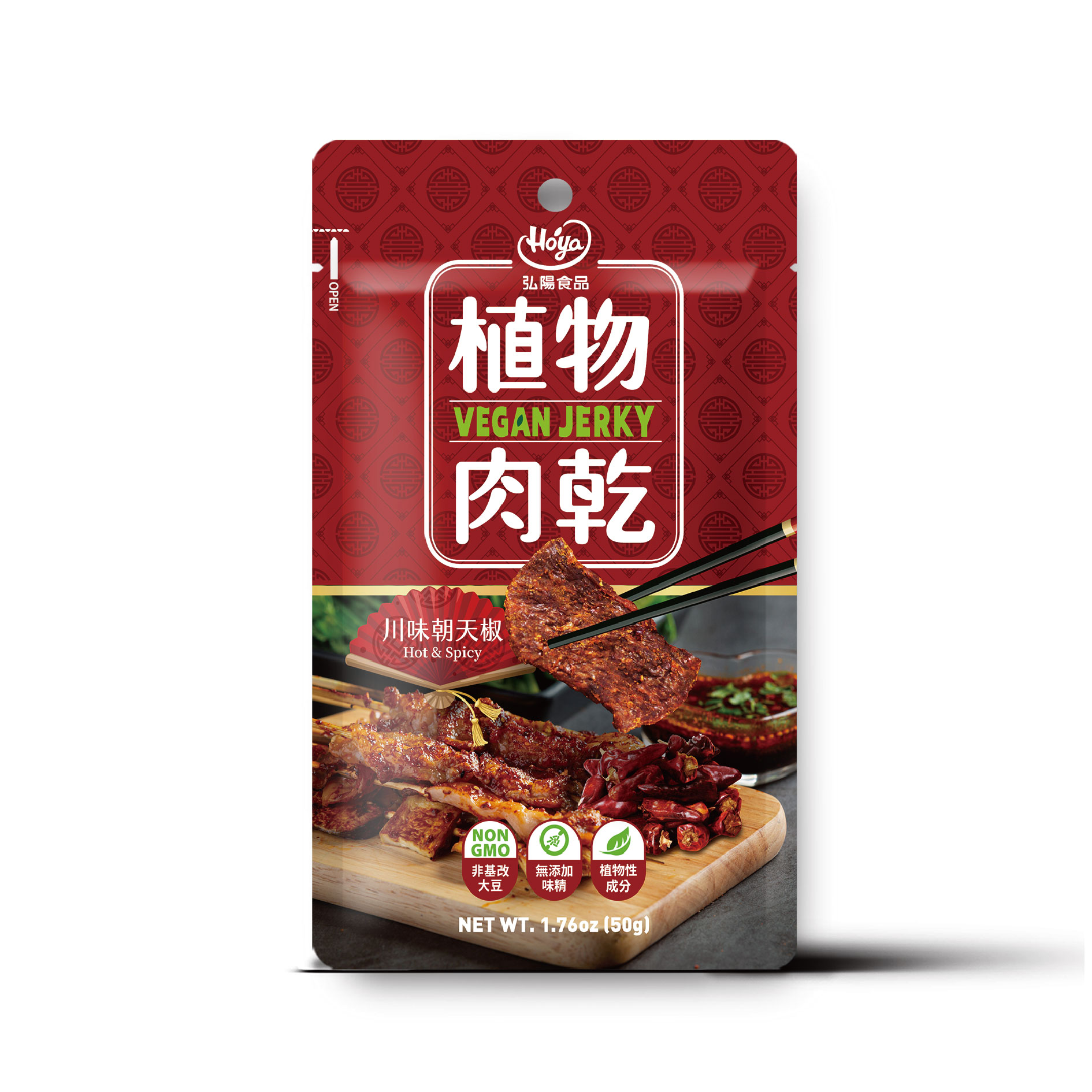 成份:組織化植物蛋白(非基因改造大豆分離蛋白、非基因改造脫脂豆粉、小麥蛋白、玉米澱粉)、砂糖、醬油、D-山梨醇液70%(甜味劑)、麥芽糖、大豆沙拉油、豌豆粉、甘油(品質改良劑)、食鹽、黑胡椒粒、香料、辣椒粒、酵母抽出物、甘草粉、黑胡椒粉、辣椒粉、檸檬酸(調味劑)、白胡椒粉。