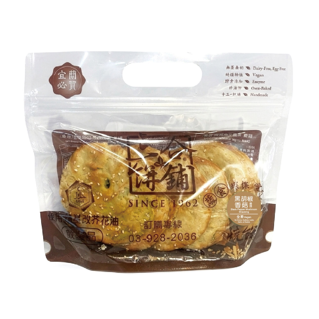 成份:無漂白麵粉、非基改芥花油、臺灣香菇、黑胡椒、芝麻、有機鹽、辣椒粉、小蘇打、肉桂、八角、丁香、小茴香、花椒、L-麩酸鈉、水果發酵液(鳳梨、黑糖)
