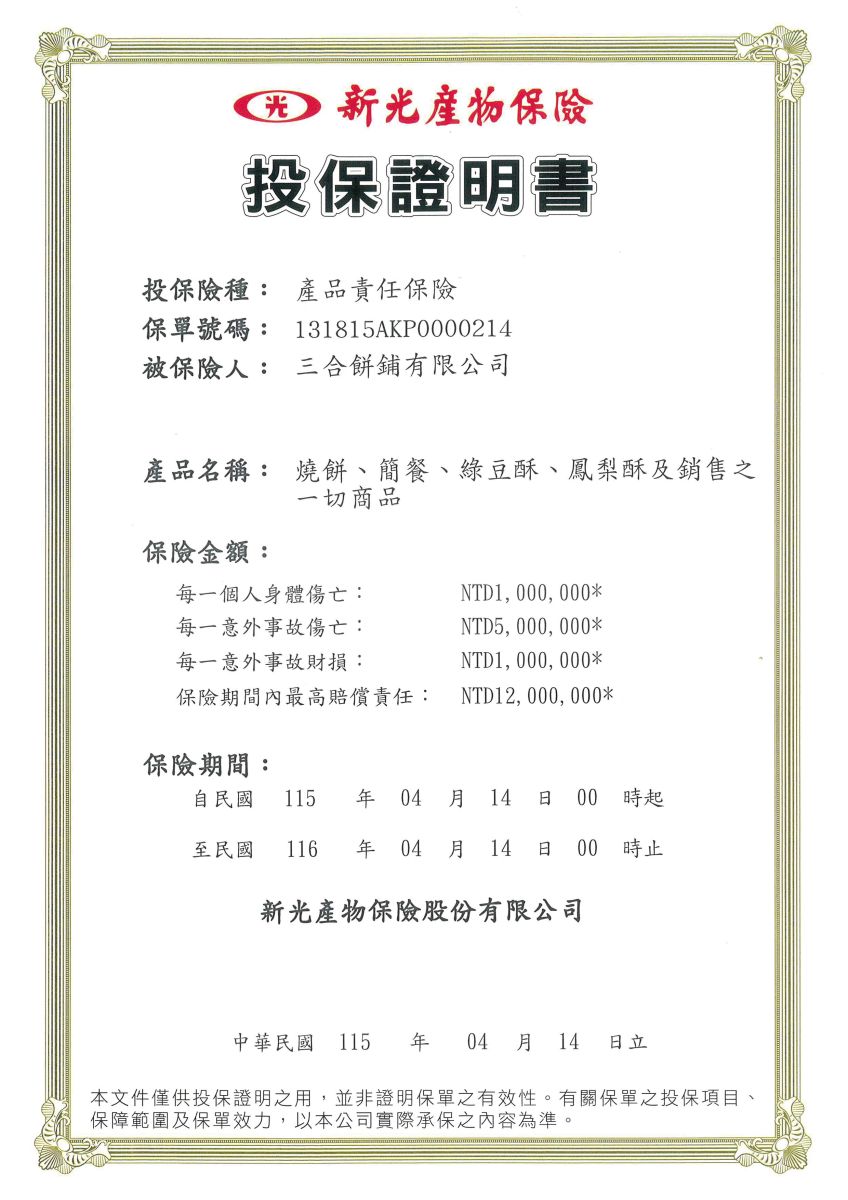 ※ 本產品含有麩質之穀物、芝麻及其製品,不適合對其過敏體質者食用。